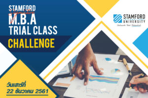 มาพบกันอีกครั้งในงาน Stamford MBA Trial Class รู้จักกลุ่มสาขาวิชาเลือก “International Business Management”, “Entrepreneurship” และ “Brand Communication” พร้อมเปิดตัว กลุ่มสาขาวิชาใหม่!ล่าสุด “Digital Marketing” และร่วมกิจกรรมจำลองชั้นเรียน สัมผัสบรรยากาศการเรียน MBA จริง กับ ดร. ตรียุทธ พรหมศิริ อาจารย์ประจำหลักสูตร MBA กับห้วข้อ “Entrepreneurial DNA” ค้นหา DNA ของความเป็นผู้ประกอบการในตัวคุณ