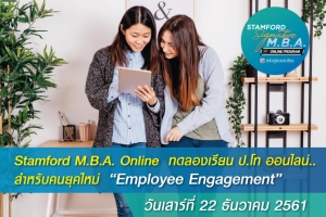 มาลองสัมผัสประสบการณ์เรียนออนไลน์จริง ในหัวข้อ “Employee Engagement กลยุทธ์การสร้างความผูกพันของพนักงาน” กับ ดร. เพชรรัตน์ โล้วิชากรติกุล อาจารย์ประจำหลักสูตร และทำความรู้จัก Stamford MBA Online สาธิตวิธีการเรียน และร่วมฟังแนะนำกลุ่มวิชาเฉพาะ 2 กลุ่ม International Business Management และ Brand Communication พร้อมรีวิว เปิดตัว กลุ่มวิชาใหม่ “Digital Marketing” พลาดไม่ได้!
