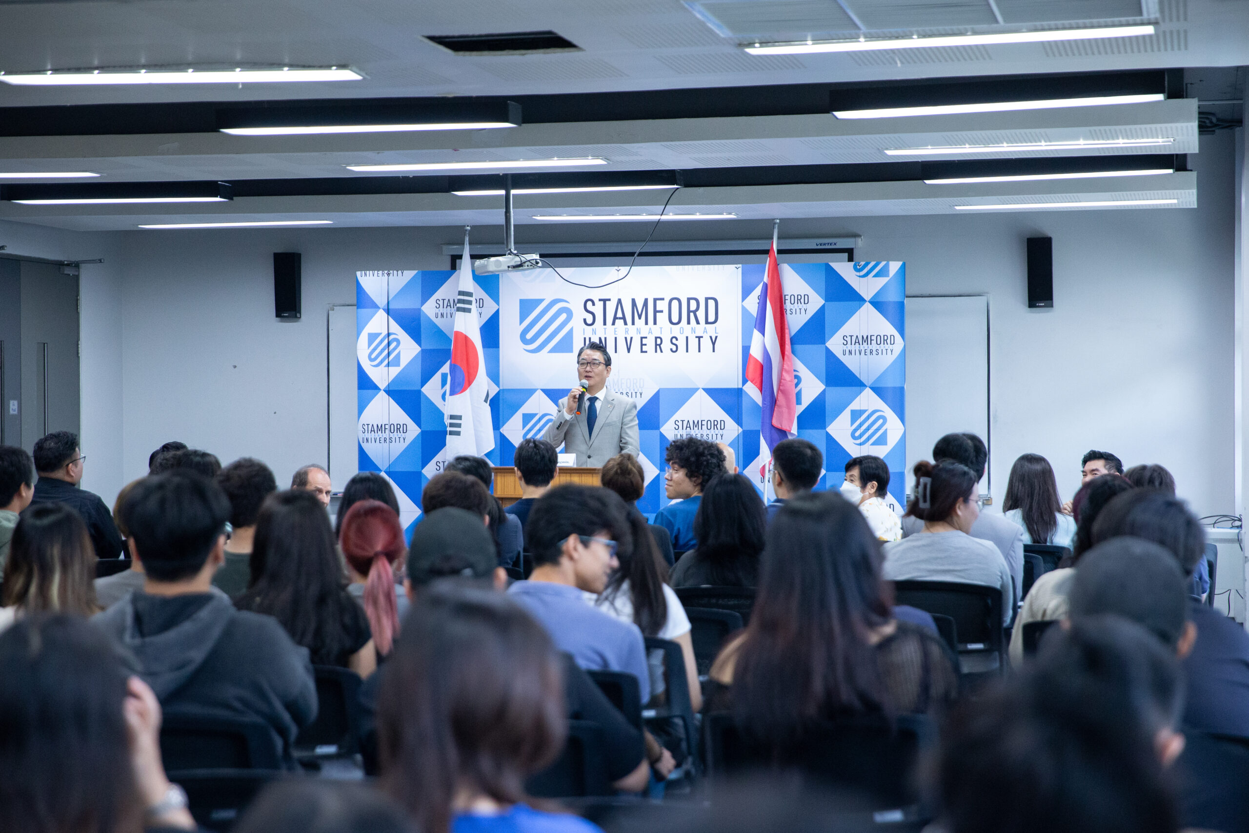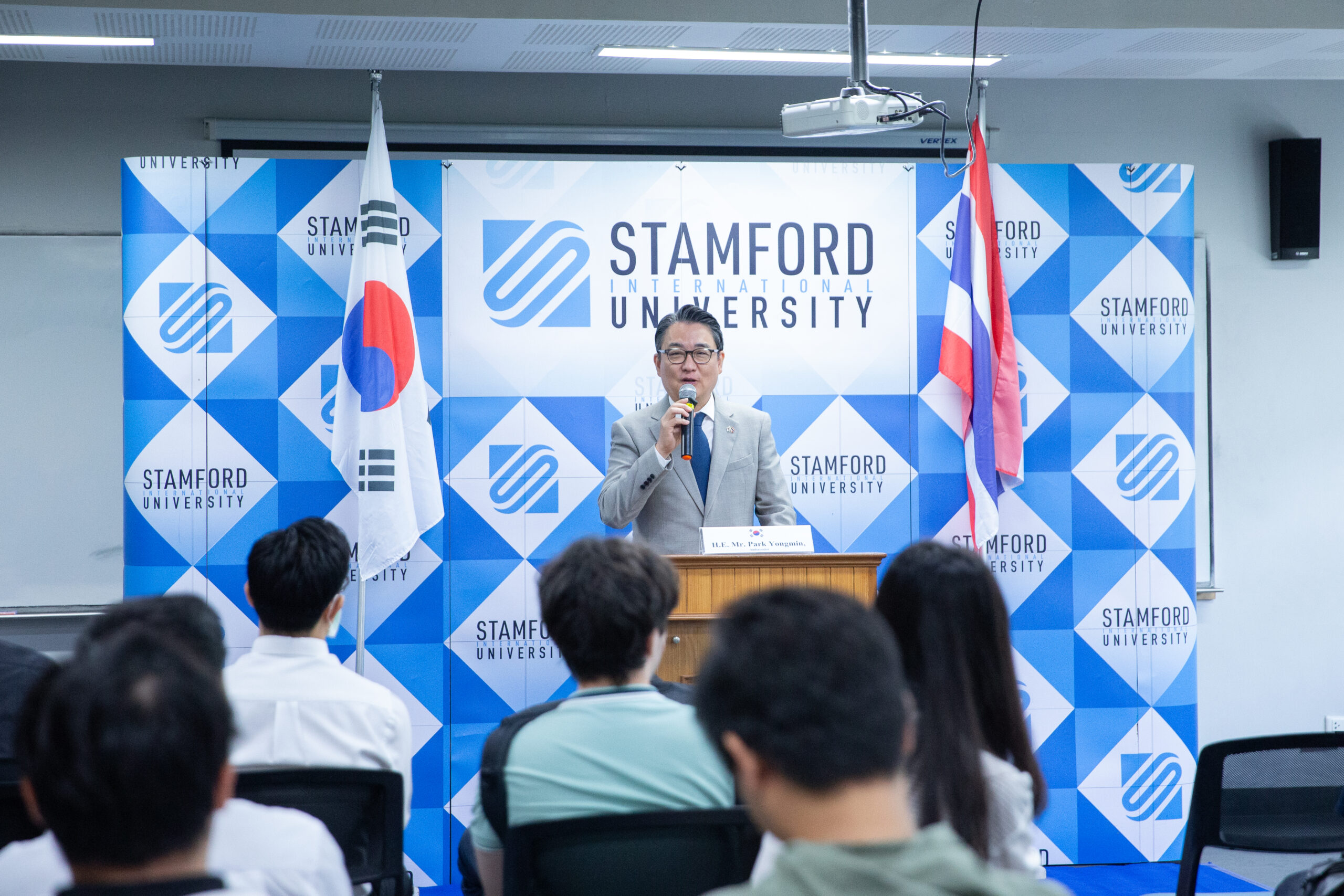 On Thursday, September 5, 2024, Stamford International University’s Rama 9 Campus in Bangkok hosted its fourth “Meet the Ambassador” event, with H.E. Mr. Park Yongmin, Ambassador Extraordinary and Plenipotentiary of the Republic of Korea to Thailand, as the distinguished guest speaker. This event is part of Stamford’s ongoing initiative to expose lecturers, staff, students, and alumni to the rich cultures, languages, and societies of Thailand and other countries.