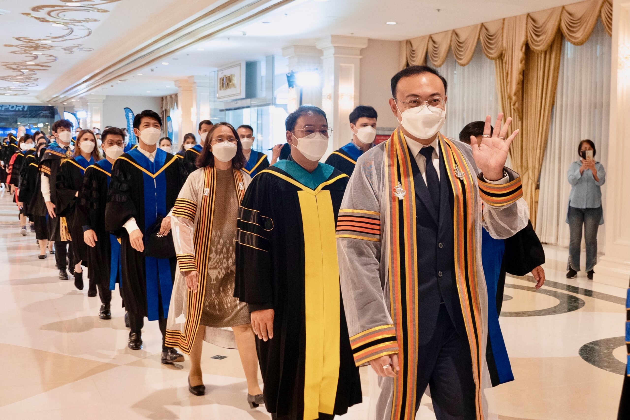 Stamford International University (STIU) organized the 23rd Commencement Ceremony for the Academic Year 2022 on Sunday, December 11, 2022, at IMPACT Arena Mungthong Thani. Acting President of Stamford, Dr. Apitep Saekow said that this Academic Year 2022, the total number of the graduates from both the undergraduate programs and the graduate program is 1,360 from 46 countries. The culturally diverse batch of graduates represents the attainment of the University Mission “Internationality.”  In September 2022, STIU has received a praise from the follow-up team supervised by Dr. Patcharinruja Juntaronanont, the consultant to the Ministry of Higher Education, Science, Research, and innovation. The team presented that STIU is one of the top higher educational institutions that has a high number of international students with multi cultural environment on campus recognized as a truly international education in Thailand.