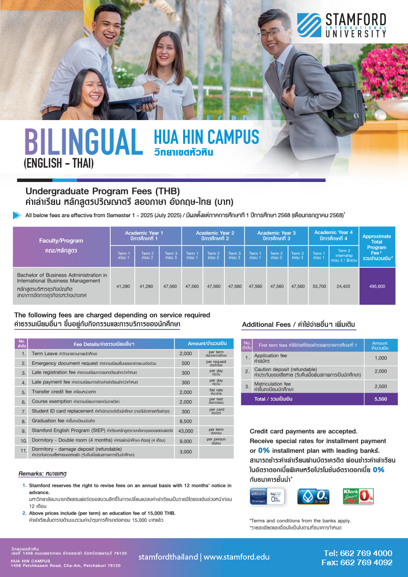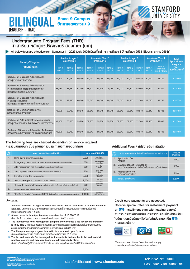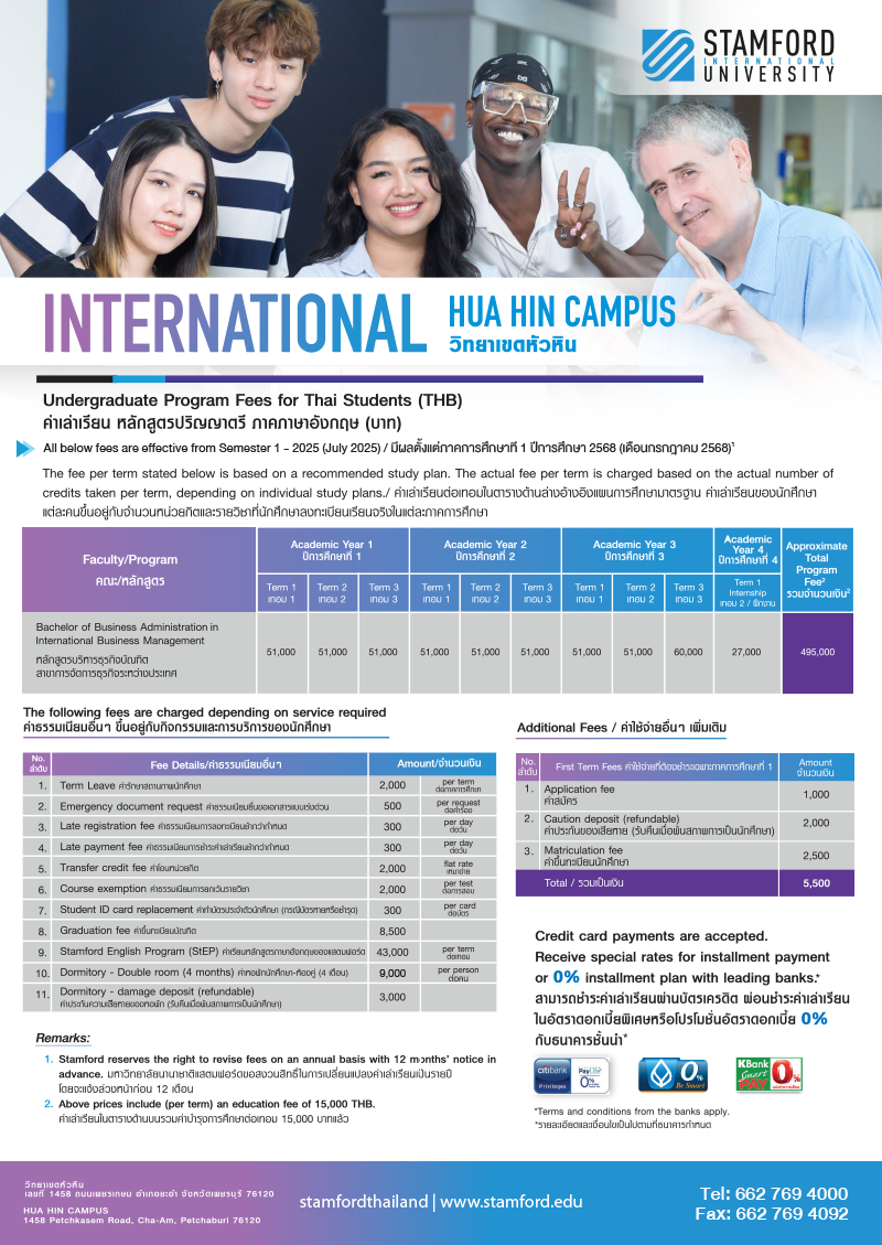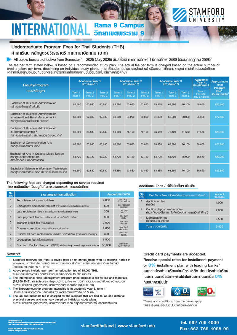 Stamford offers flexible online payment options to both Thai and international students: