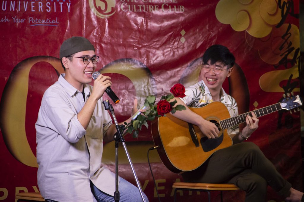 It wasn’t all about the food, however, as the events were enlivened by over 15 performances from the Stamford Music Club as well as students and even faculty members such as Ajarns Gloria and Serena joining in. The talented performances included dancing, singers (solo, group and chorus), and instrumental music such as guitar playing. There was also a display of traditional Chinese calligraphy, Vietnamese handicrafts and fireworks for Tet.