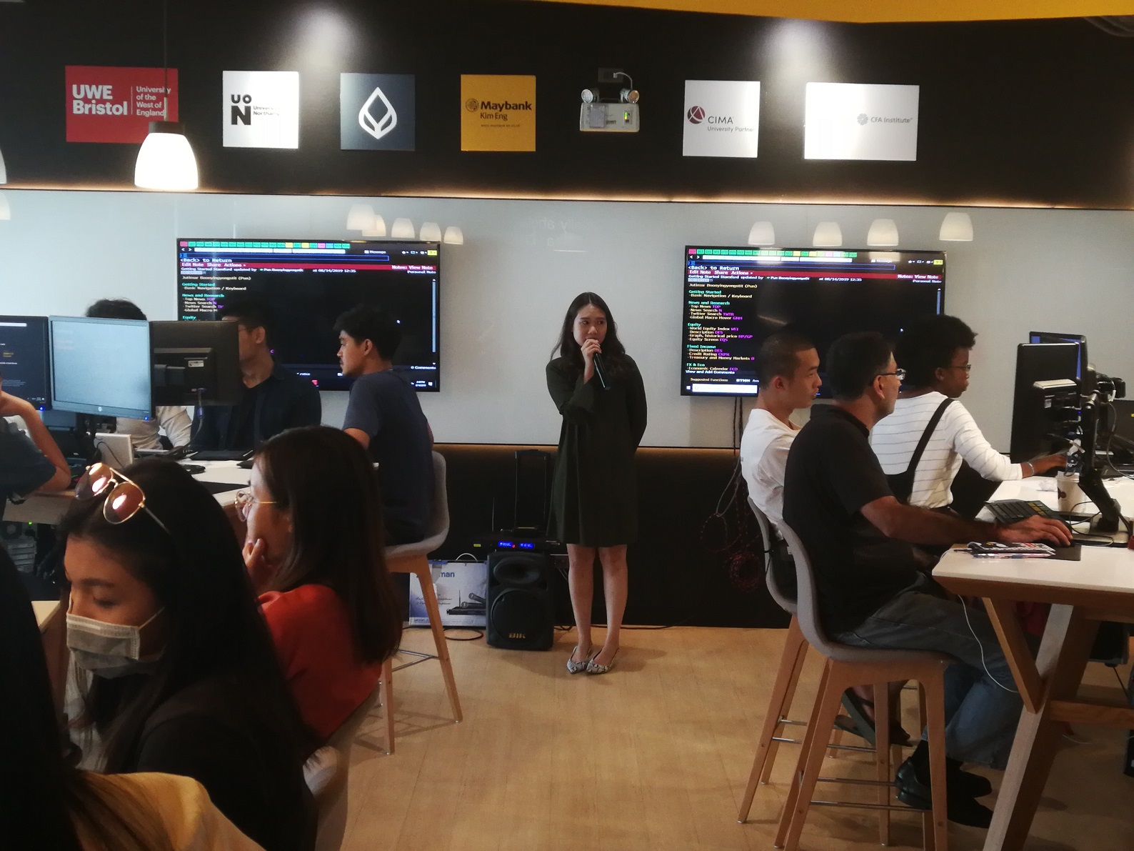 Khun Pun Boonyingyongstit from Bloomberg LP (Singapore) conducted a hands-on Bloomberg Terminal navigation training session on August 14, 2019 at Stamford’s cutting-edge Bloomberg Financial Markets Lab. Students from the Faculty of Business of Technology learned how to navigate the Terminal using the specialized keyboard and some of the basic commands for accessing market information and news. The Bloomberg Terminal is used by major financial firms and investment management organizations around the world. Stamford’s Lab therefore provides great benefits to students interested in pursuing a career in a highly competitive financial industry..