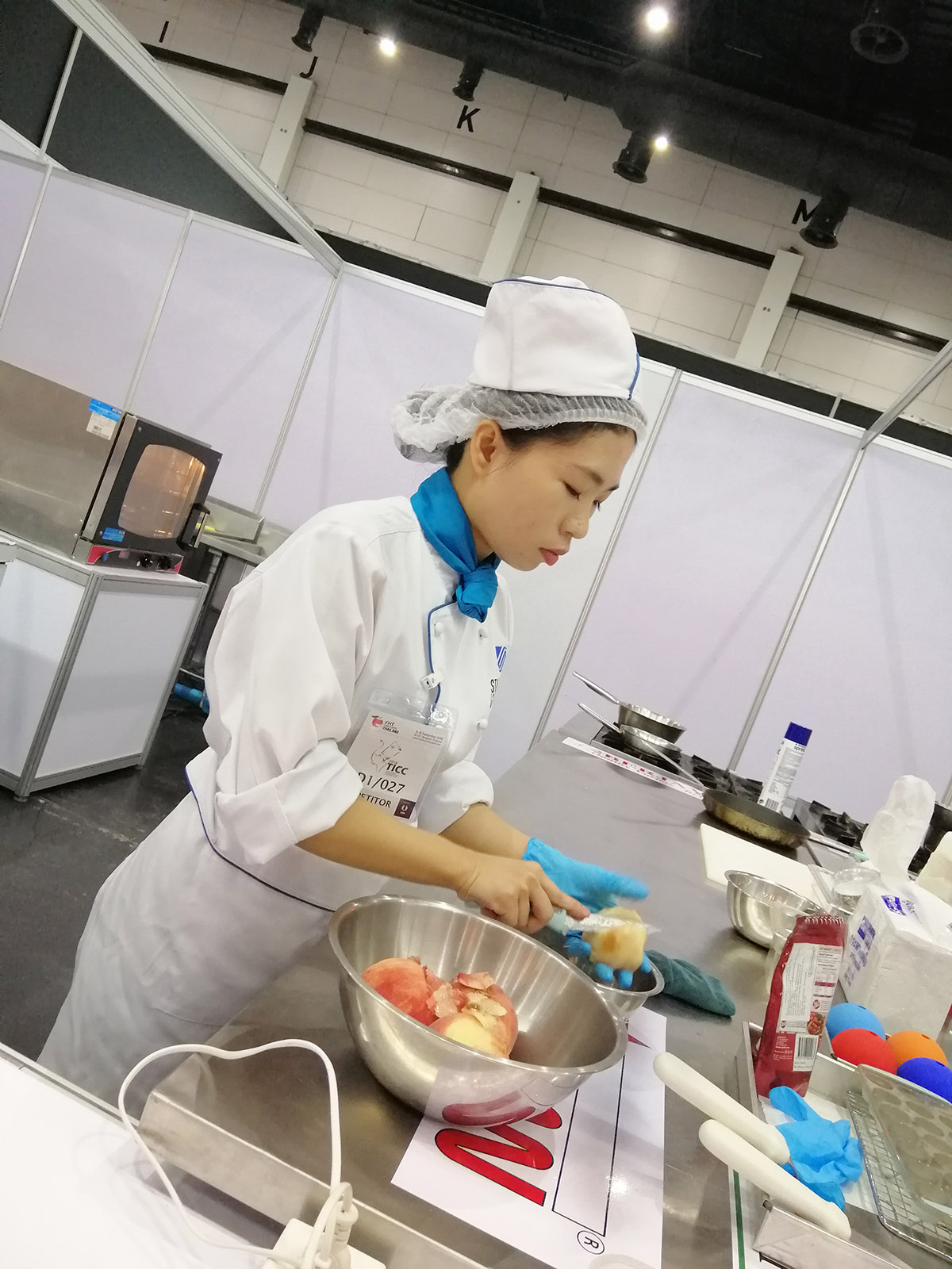 The students had two hours to prepare three dessert plates starting from scratch. For the “Western Cold Plate Dessert: Individual” category, judges were looking at taste, presentation, hygiene & safety, and technique.